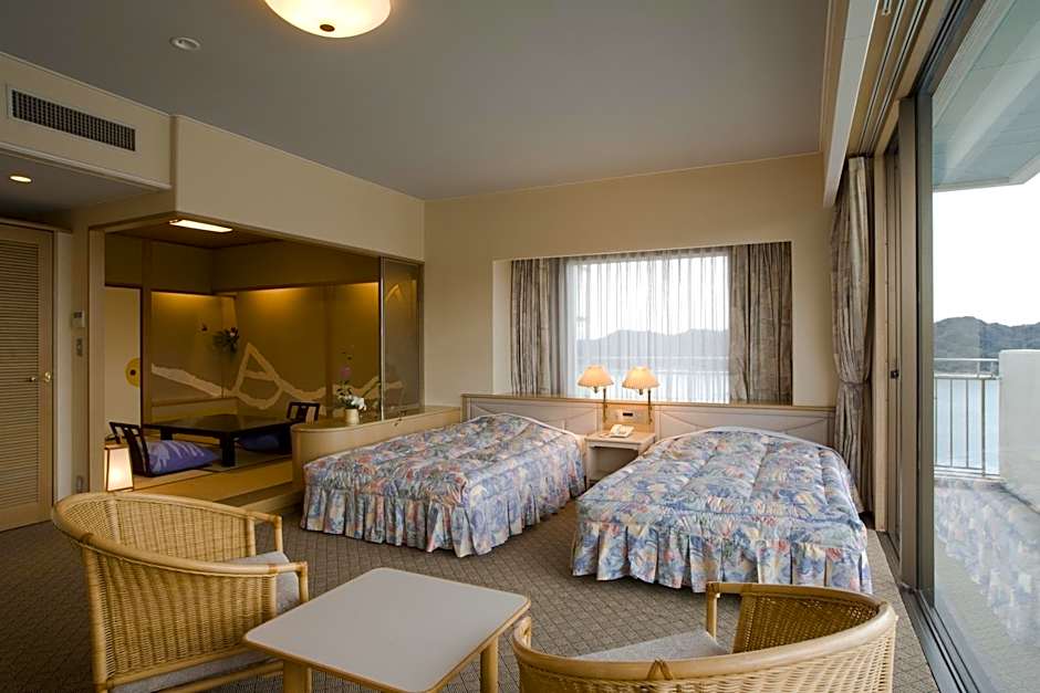 Featuring free toiletries, this family room includes a private bathroom with a bath, a shower and a hairdryer. The spacious air-conditioned family room features a flat-screen TV, tatami, a seating area, an electric kettle as well as sea views. The unit has 5 futons.